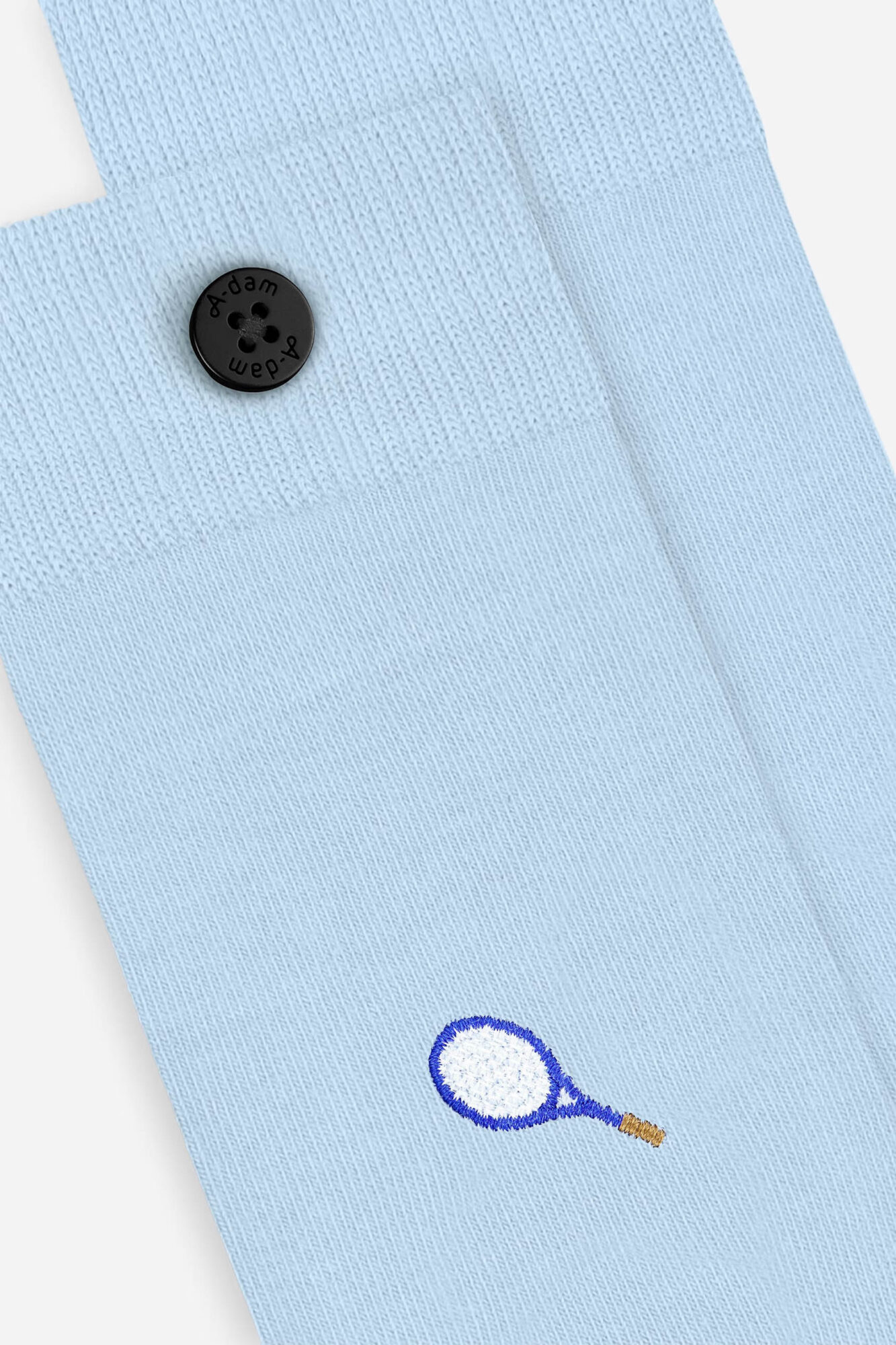 Adam Socken Racket light blue. Diese Socken von Adam sind richtig cool und trotzdem dezent. Die kultige Stickerei mit dem Tennisschläger läßt nicht nur Tennisasse gut aussehen! Frauen wie Männer freuen sich darüber – das ideale, kleine Geschenk.