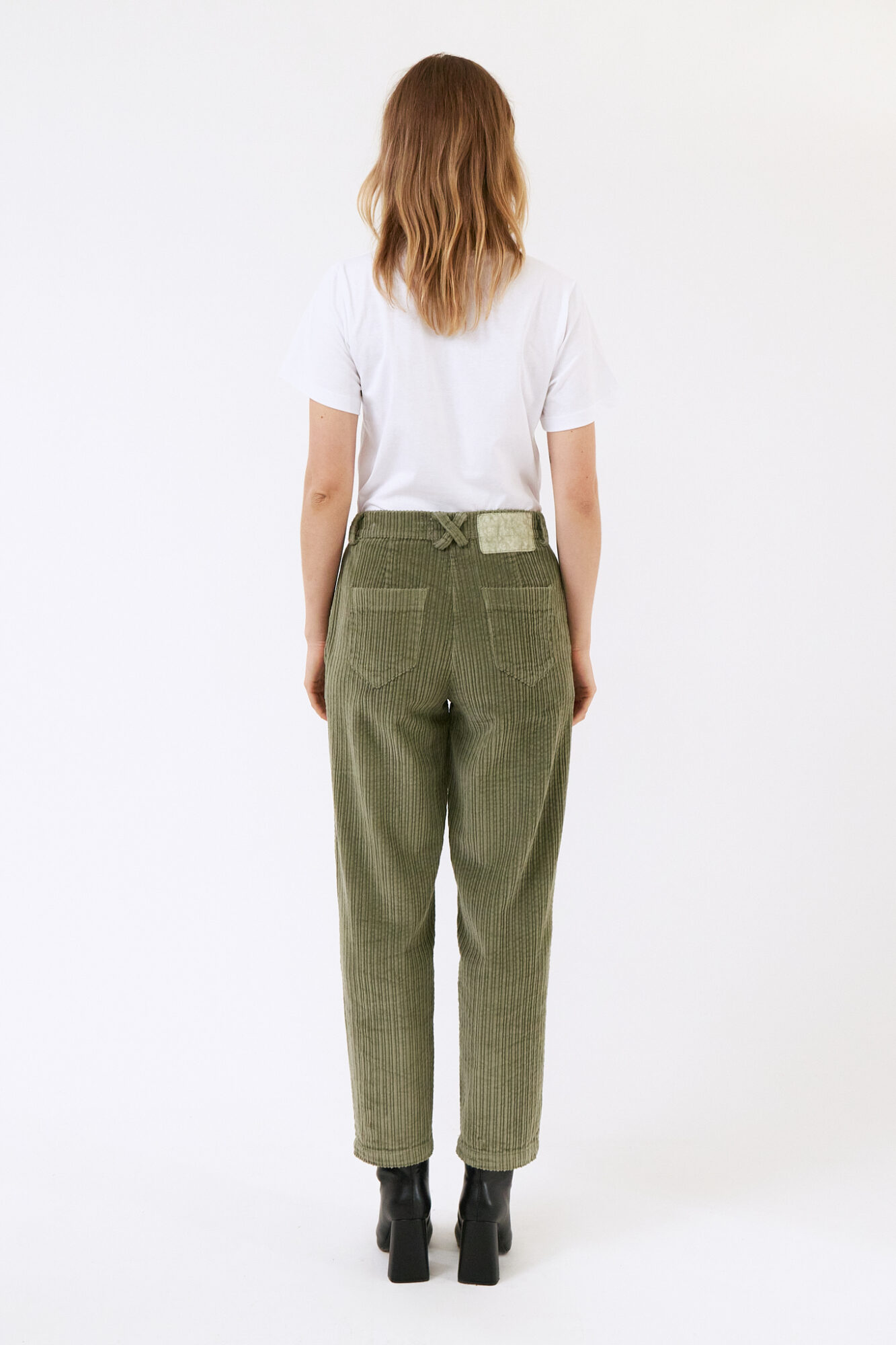 AMT Cordhose Abeto olive green. Diese Hose mit einem breiten Cordbund ist aus dickem, assymetrisch gerippten Cord in einem tollen Olivgrün. Die Farbe ist einfach zu kombinieren und passt zu vielen anderen Farben. Ihr gerader, schmeichelhafter Schnitt macht sie perfekt für jeden Anlass. Am Fuß hat sie einen kleinen Umschlag. Bequem und schick, sind sie ideal für kühlere Tage.