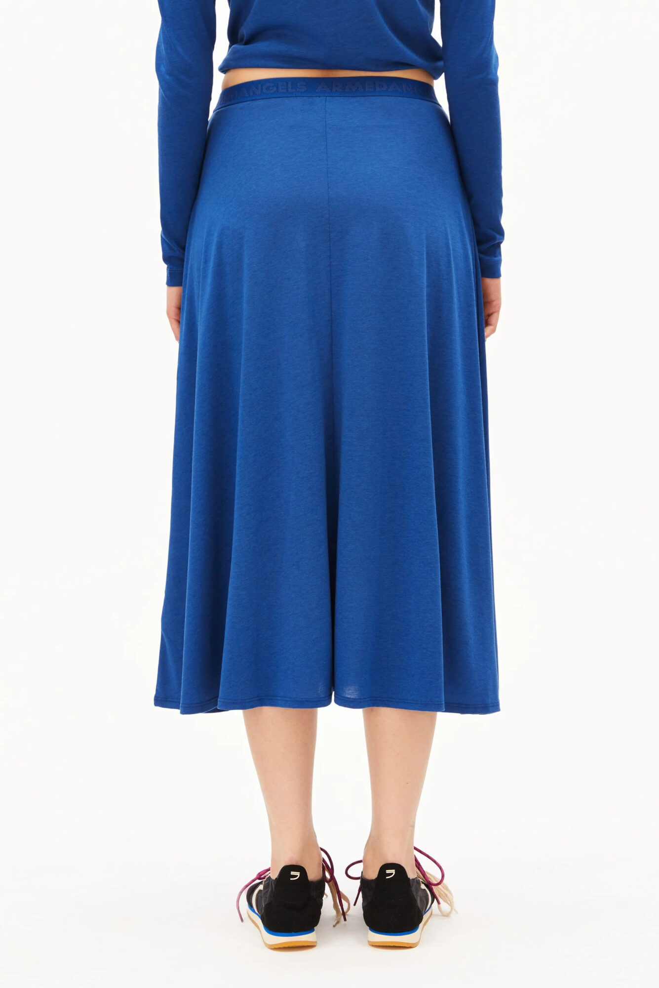 Armedangels Rock Ileniaa laraa dynamo blue. Ein Midirock aus wunder-weichen Lycocell und Baumwollmix in Knallblau. Der Rock umschließt deine Hüften angenehm sanft mit einem elastischen Bund mit stylischem Armedangels-Schriftzug. Der weite, luftige Schnitt verleiht dem Rock viel Bewegungsfreiheit und einen tollen Schwung. Durch den Stoff Lycocell, der aus Holzfasern gewonnen wird, in Kombination mit der Baumwolle fühlt sich der Rock zudem seidig weich auf der Haut an und ist super atmungsaktiv. Ein absolutes Must-have in jedem Kleiderschrank.