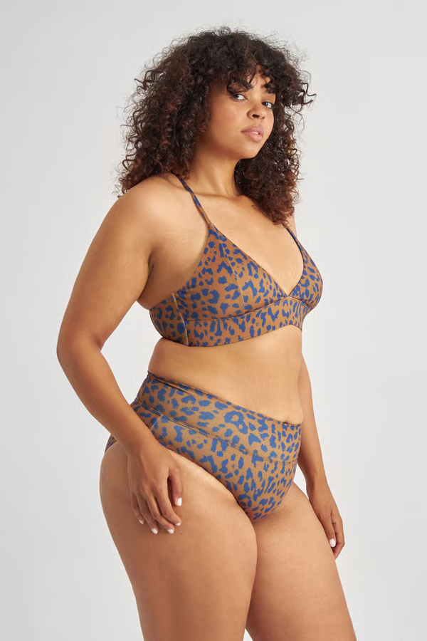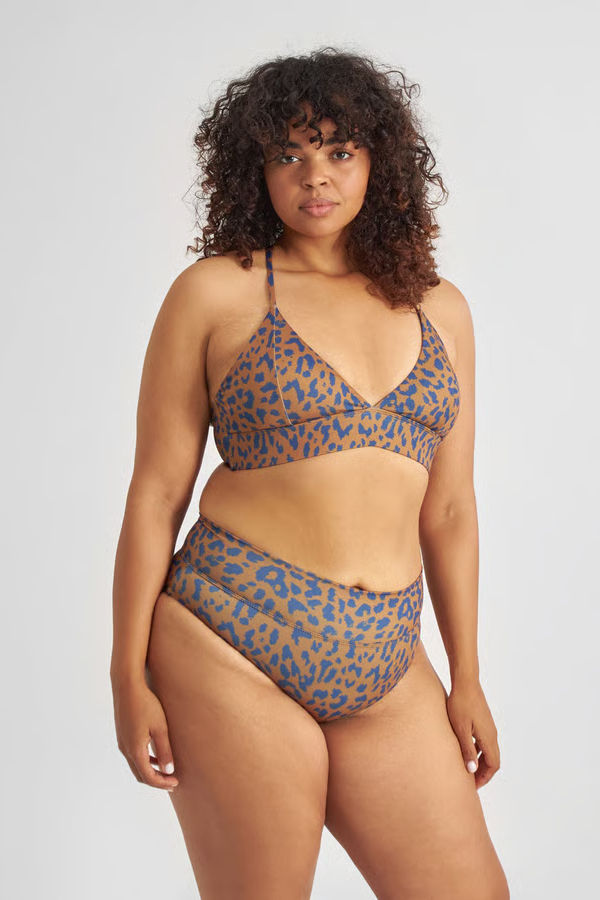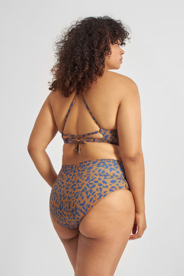 Dedicated Bikini Hose Slite Leo braun-blau. Im high-waist fit ist die Bikini Hose nicht nur vielseitig kombinierbar, sondern sitzt einfach super! Das Material aus recycelten PET Flaschen ist zudem super angenehm auf der Haut. Das stylische Leo-Muster ist ein richtiger Hingucker – also ab an den Strand!