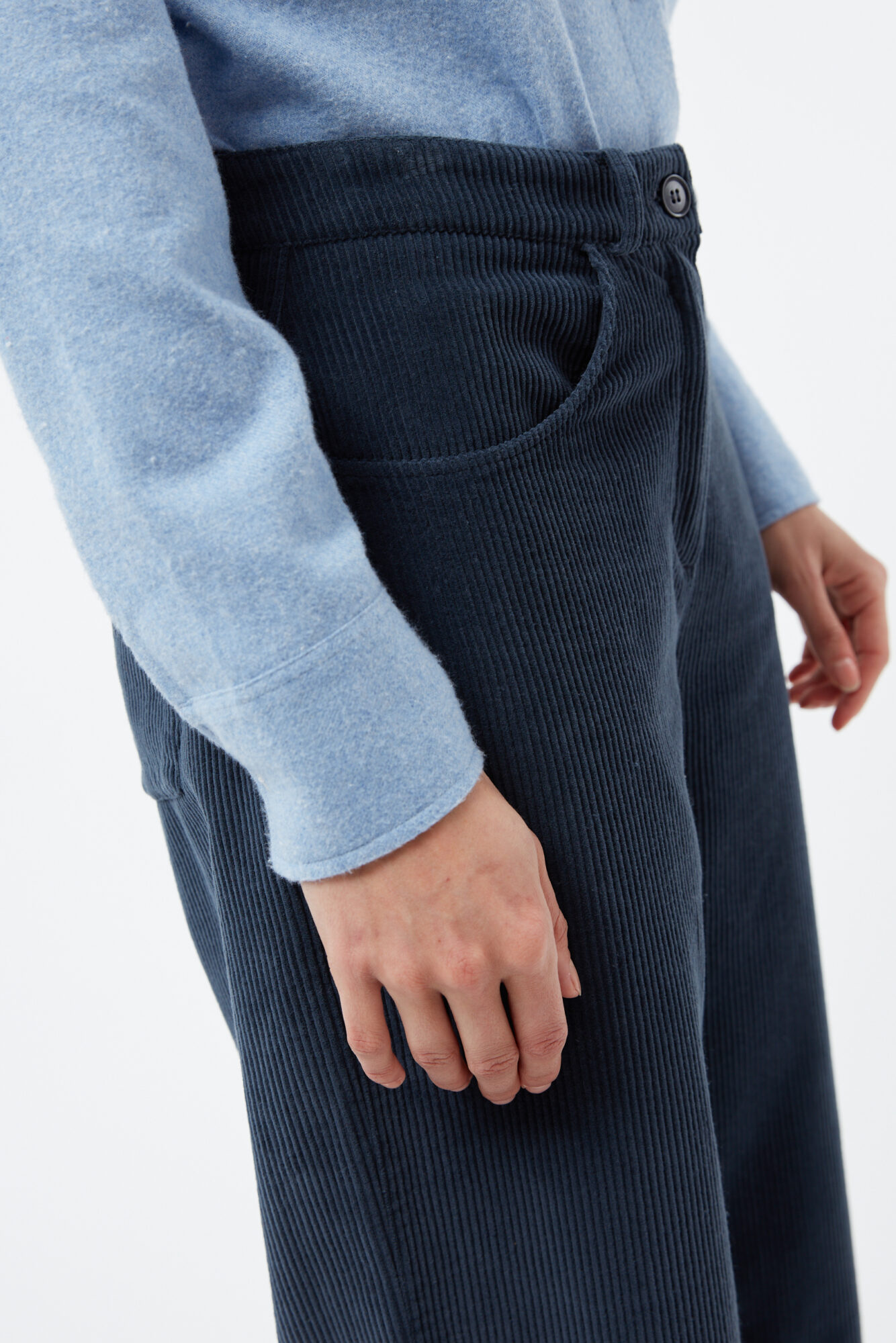 Lässige Cordhose mit weitem Bein und hohem Bund.