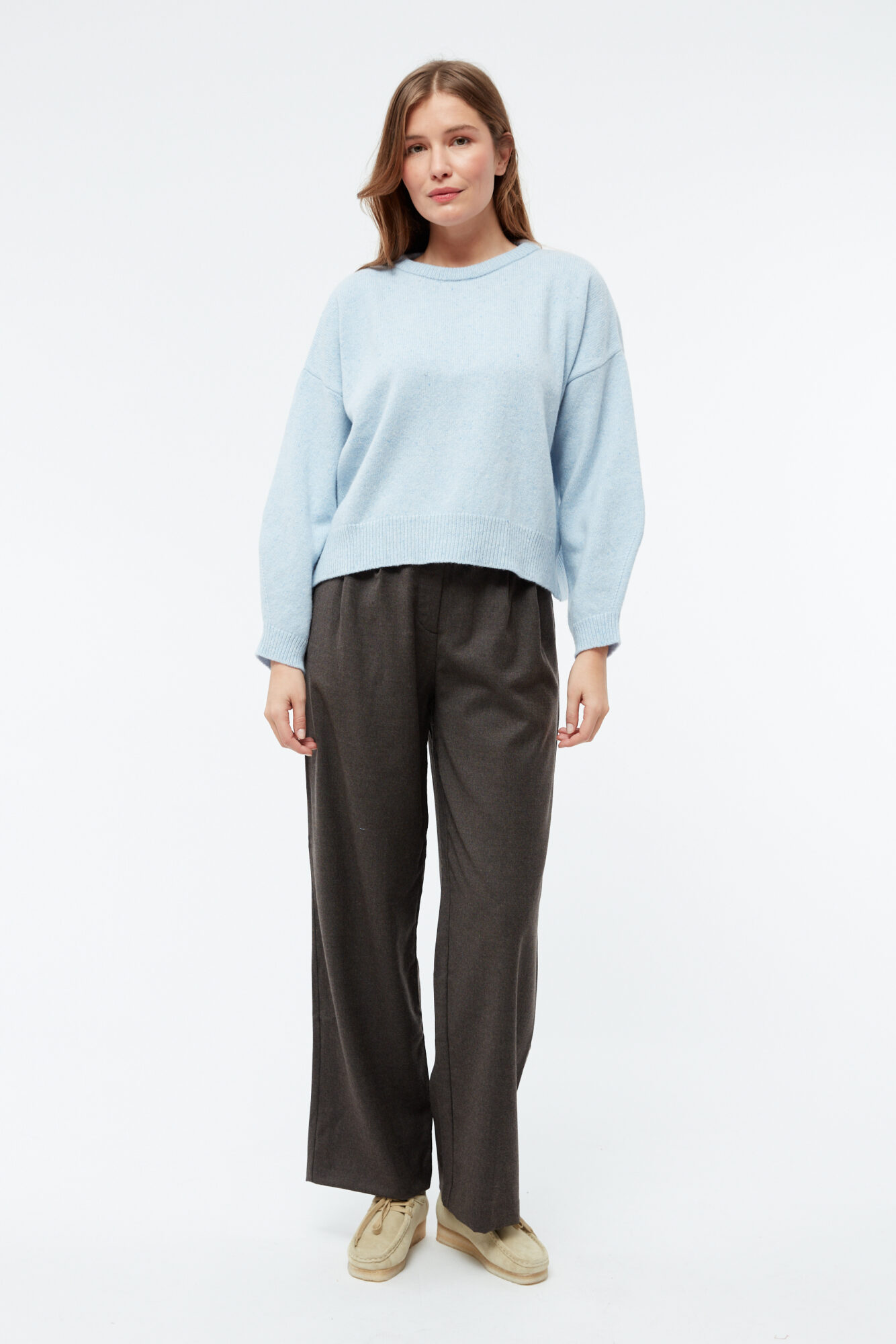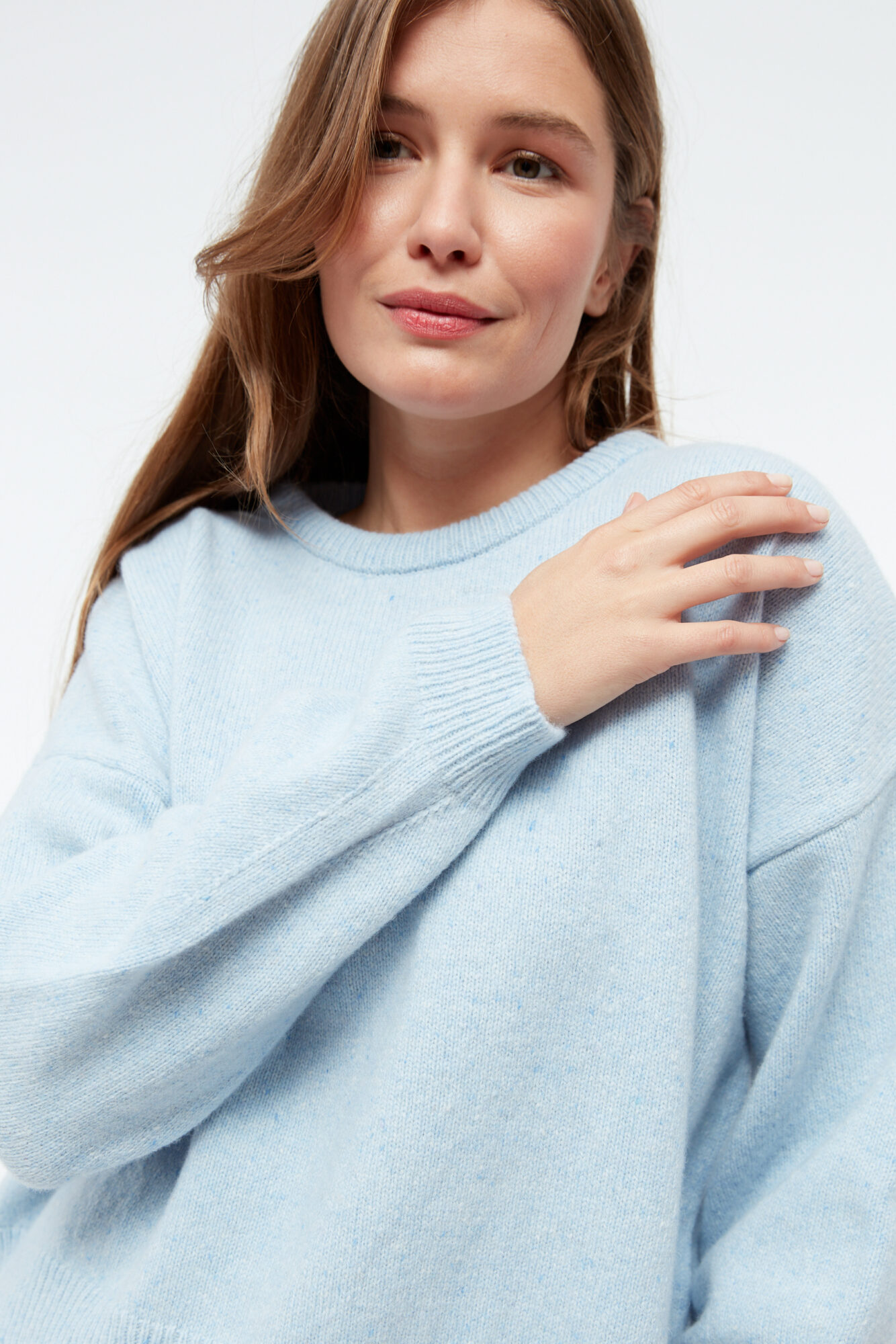 Givn Pullover GBJella light blue. GBJella ist ein zeitloser Strickpullover im klassischen Schnitt aus recyceltem, zertifiziertem Wollgemisch mit zarter Melierung. Er lässt sich für ruhige Alltagslooks oder für Herbstspaziergänge im Layerlook tragen. Die schöne Textur der Wolle sorgt für ein dezentes Detail. Unser Styletipp: Das Hellblau sieht besonders gut zu Bordeaux aus.