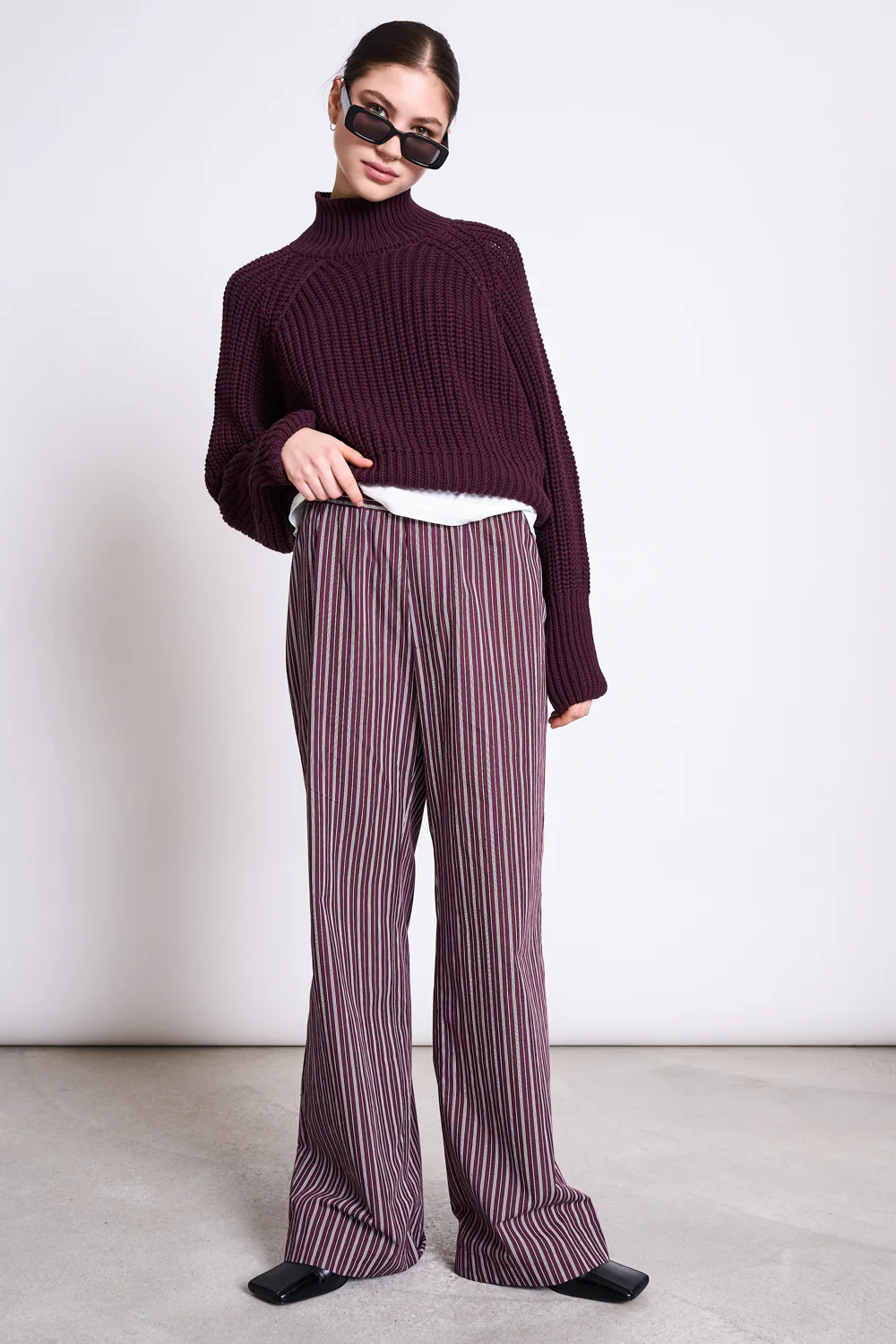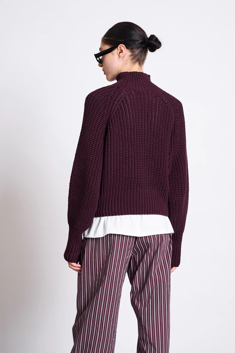 Grobstrick Pulli aus Baumwolle. Cropped und mit Stehkragen, in Bordeaux.
