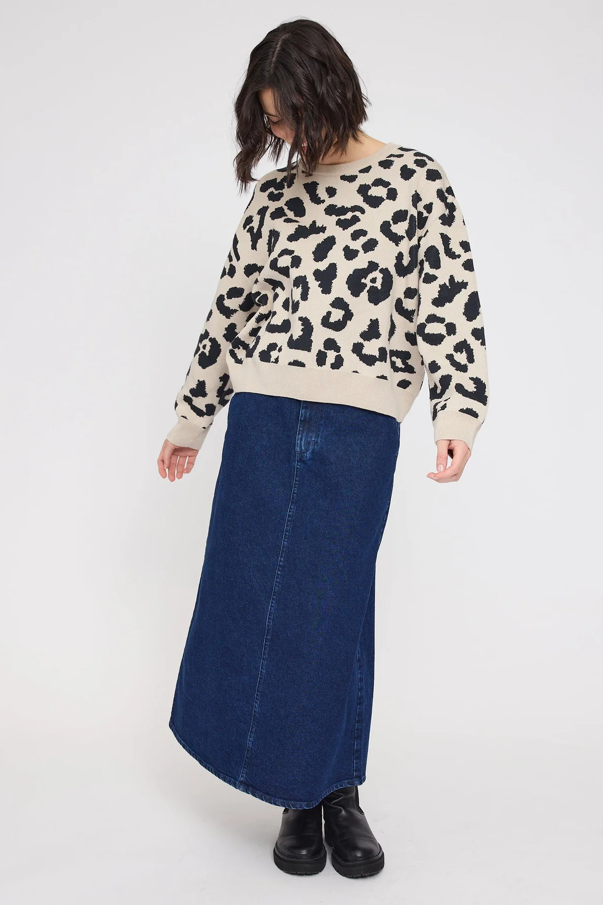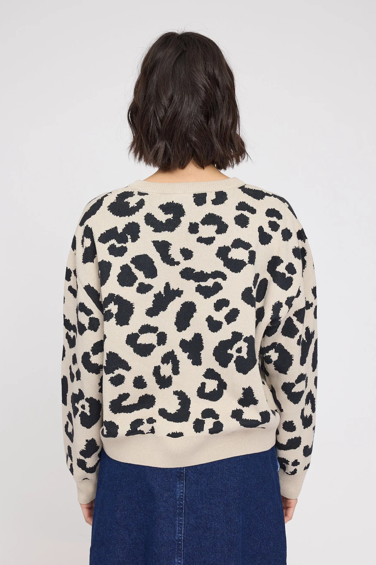Mazine Pullover Jacard Knit Jumper Leo peyote-black. Dieser Pulli setz ein modisches Ausrufezeichen! Das charakterstarke Leopardenmuster wird in aufwendiger Jacquard-Technik umgesetzt und verleiht dem Pullover nicht nur visuelle Tiefe, sondern auch spürbare Struktur. Ein Design, das auffällt – ohne laut zu sein. Hergestellt aus GOTS-zertifizierter Bio-Baumwolle überzeugt der Jumper mit einem weichen Griff und hohem Tragekomfort. Die lockere Passform und der klassische Rundhalsausschnitt sorgen für eine entspannte Silhouette und machen das Modell zum vielseitigen Essential – lässig kombiniert zu Denim oder stilvoll zu Rock und Tailored Pants. Ein Pullover für stilbewusste Individualist:innen, die sich zwischen Komfort und Charakter nicht entscheiden wollen.