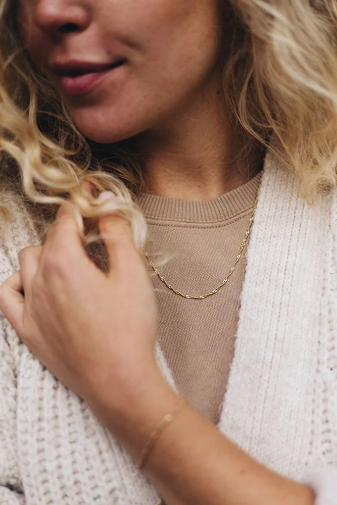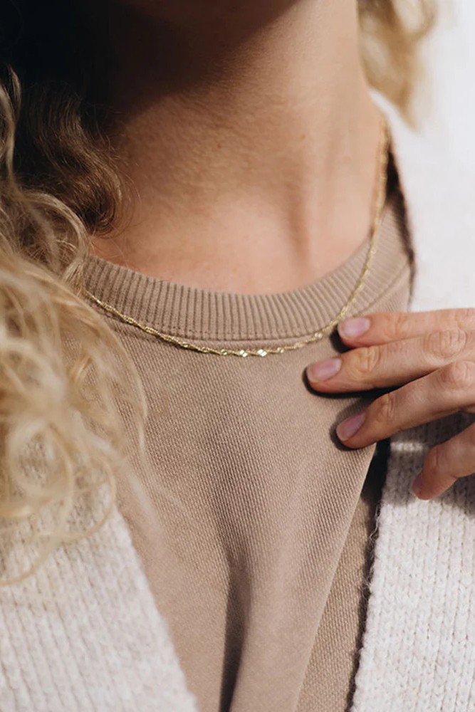 Kette aus recyceltem Silber, vergoldet in gedrehter Optik. Länge 40cm. Auch in Silber.